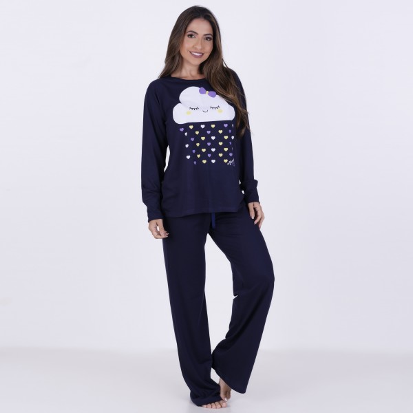 Pijama em algodão , manga longa e calça comprida com estampa de silk, cadarço na cintura para que você ajuste perfeitamente no corpo. Muito confortável e muito estiloso. Linda estampa de nuvem . Coleção nova e exclusiva