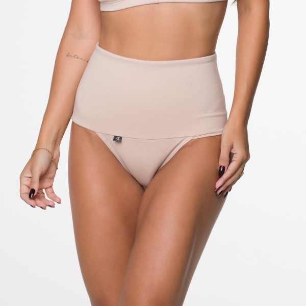 Calcinha Pala Super Larga Fio Compressão em Algodão Egípcio na cor Areia