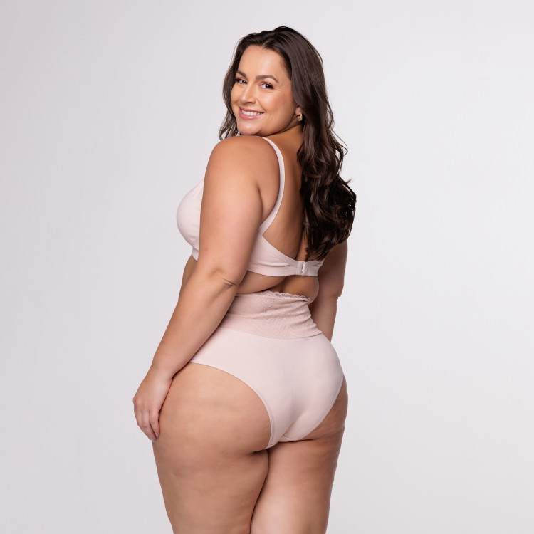 Calcinha de Cintura Alta Plus Size em Algodão Egípcio com Barra de Renda Forrada na Cor Nude