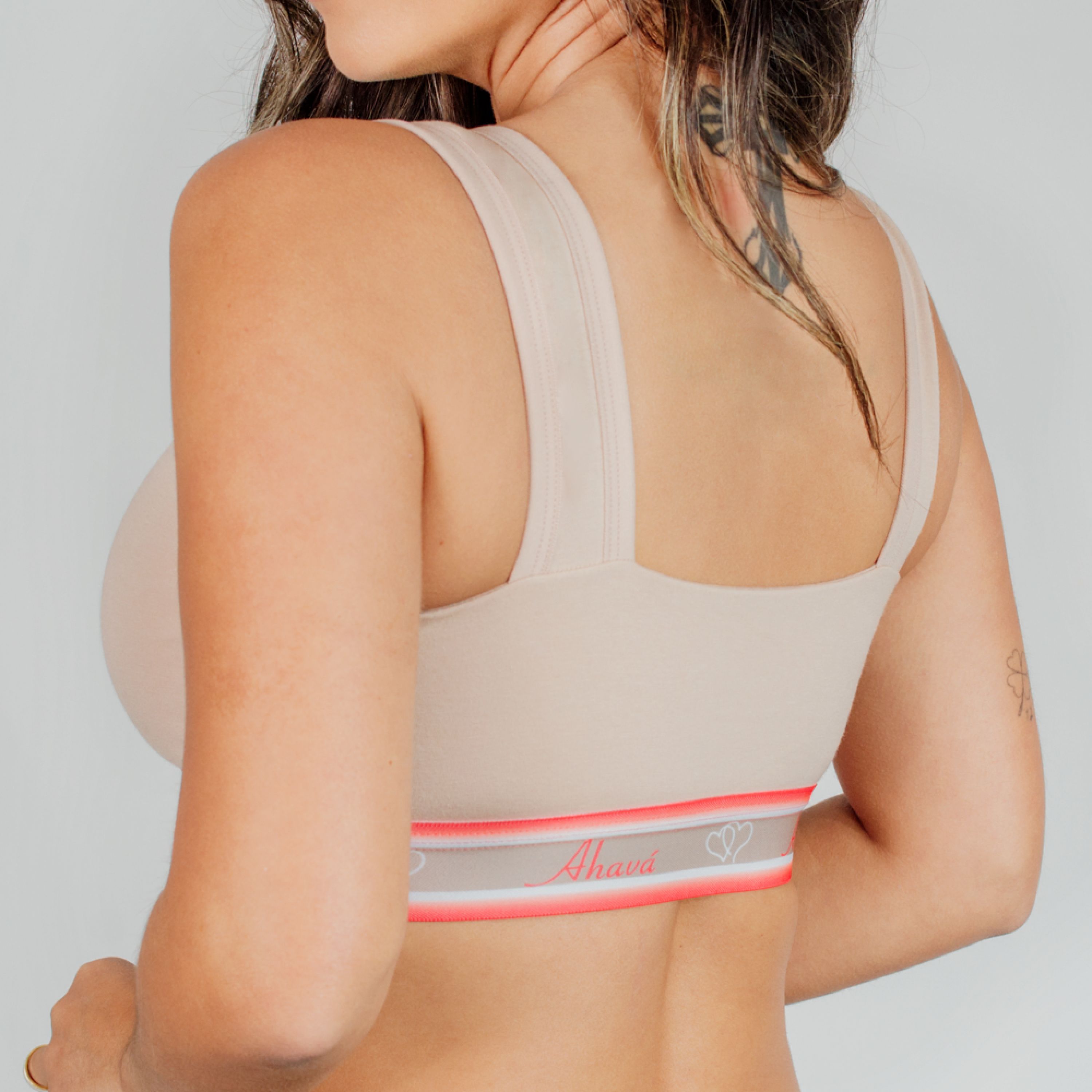 Top Duplo na cor areia, confeccionado em algodão egípcio com elástico personalizado e costas mais largas. Ideal para o seu dia a dia. Proporciona versatilidade e bem-estar. Possui um toque suave e macio, garantindo maior conforto.