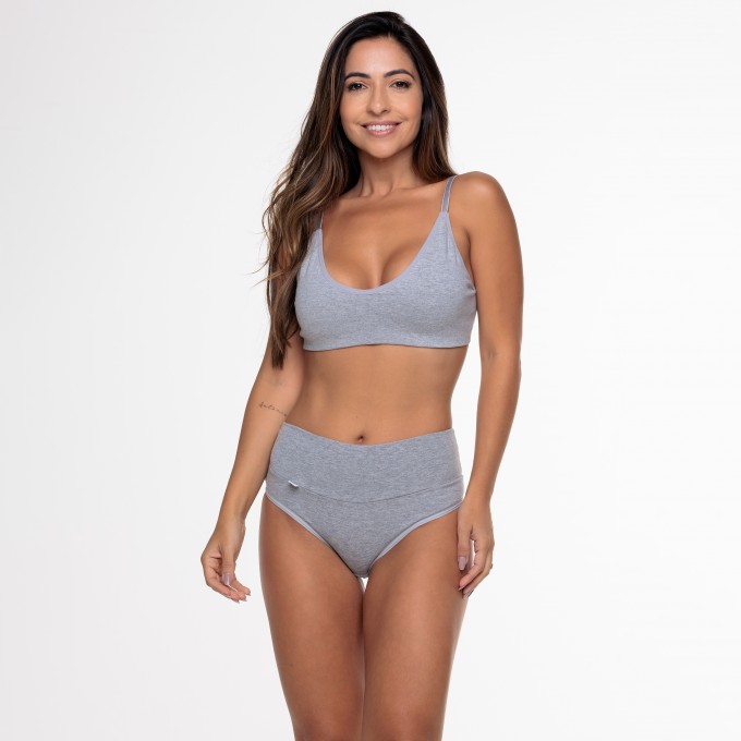 Sutiã Básico em Algodão Egípcio sem Bojo na cor Cinza Mescla Clara
