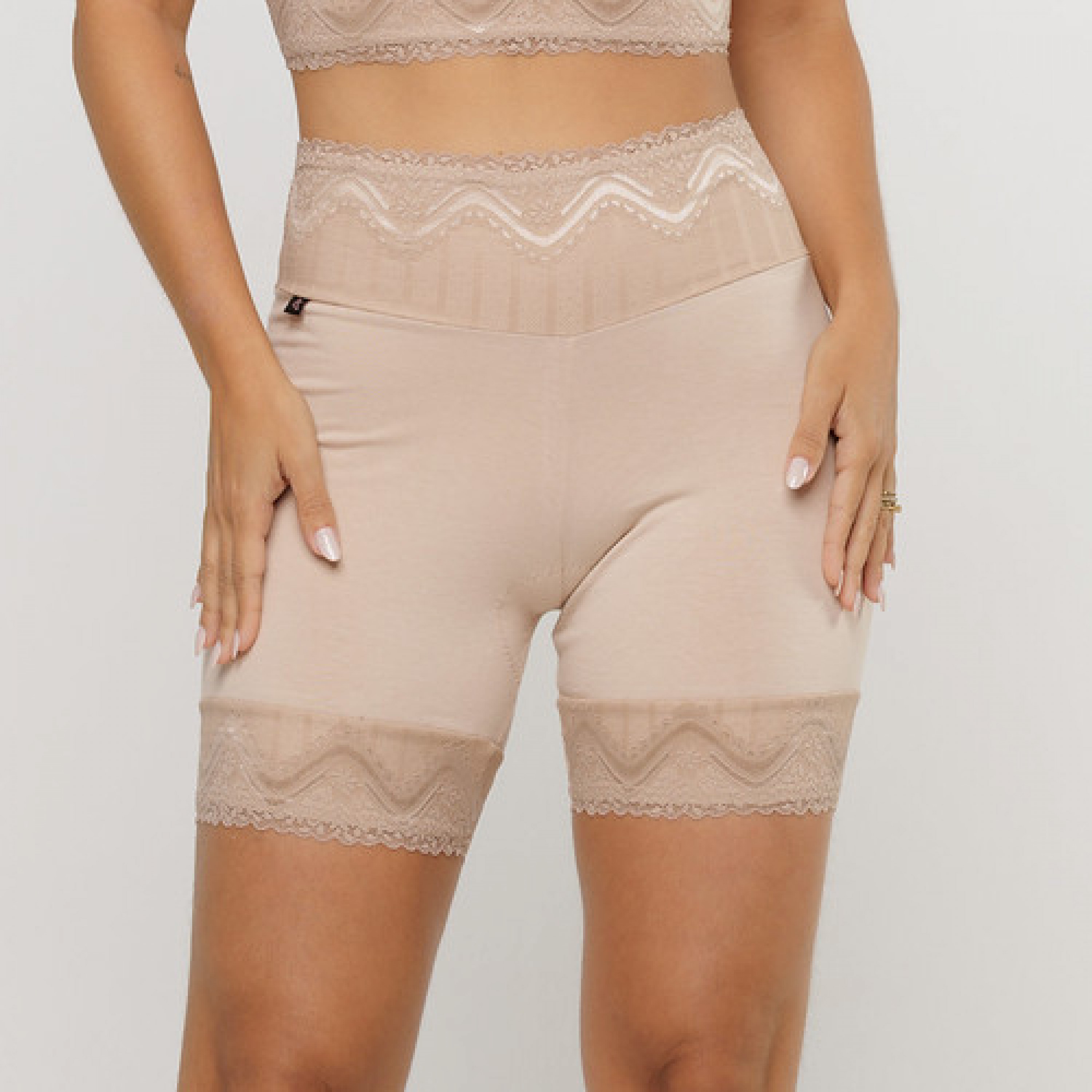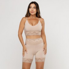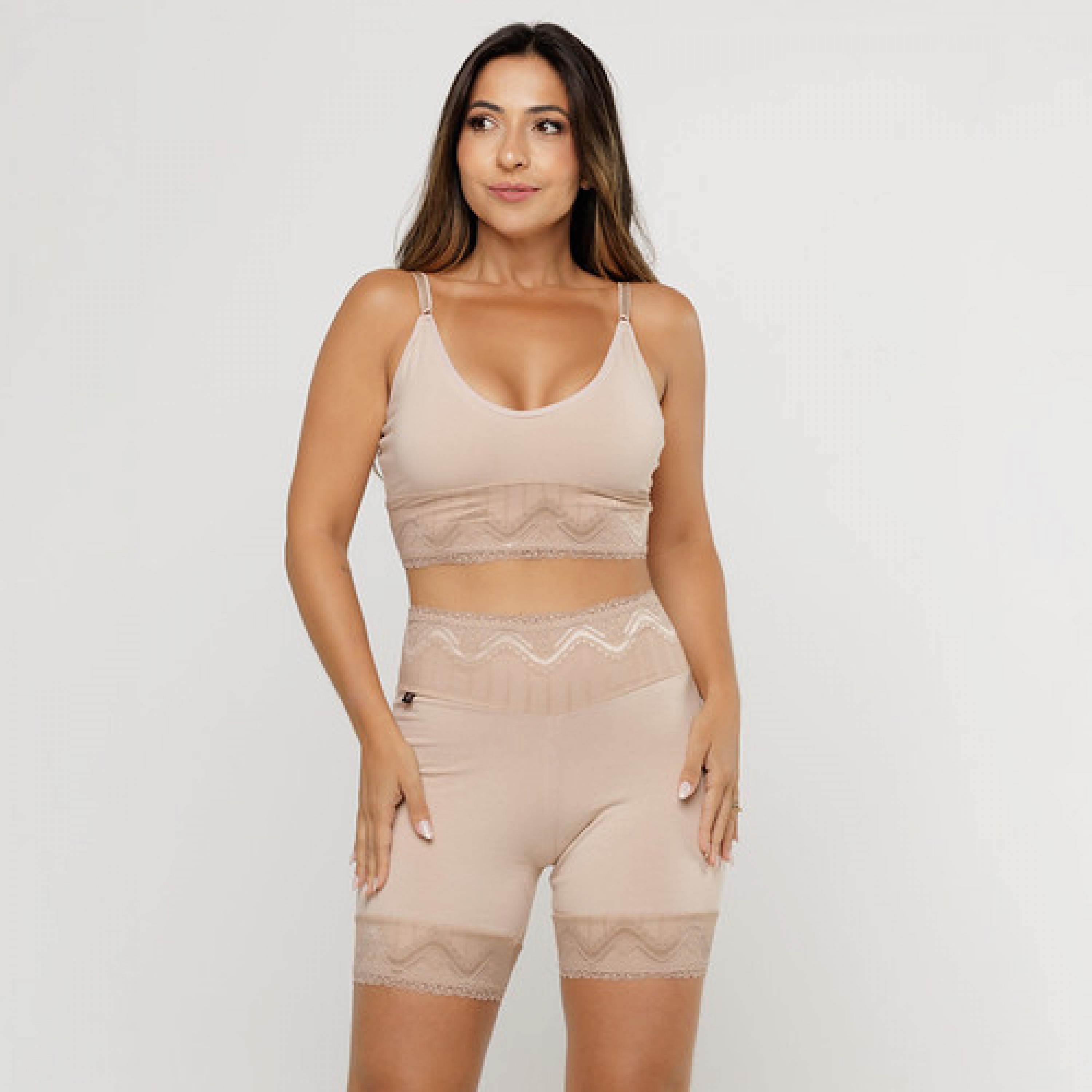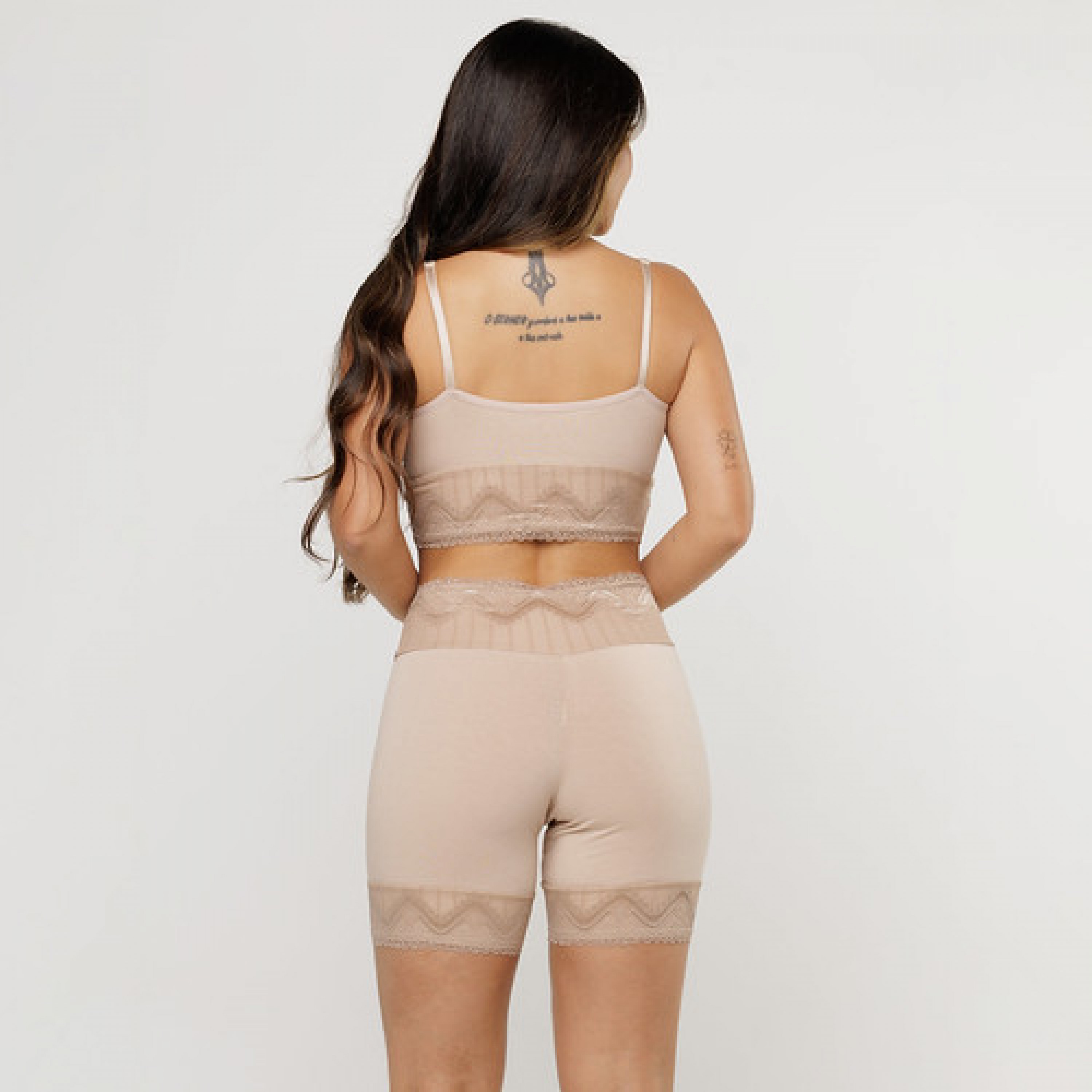 Conjunto cropped em algodão com renda Nude P.A sem bojo.