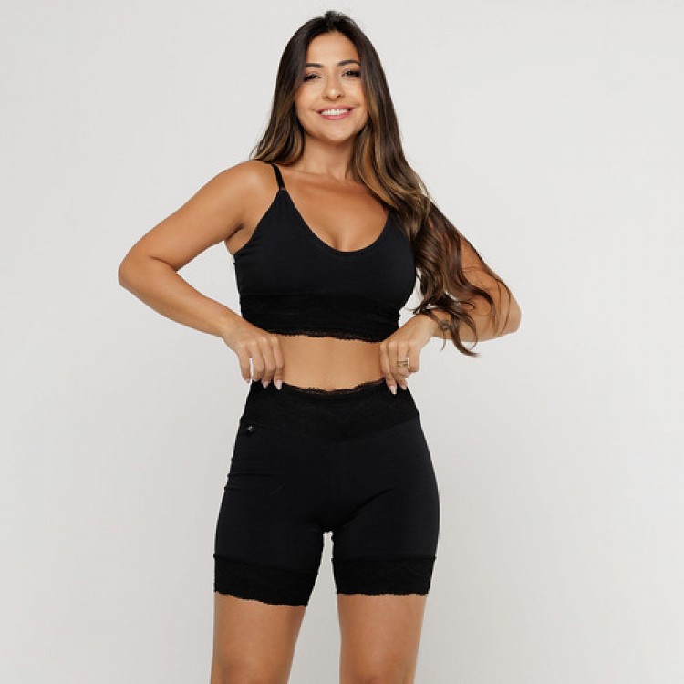 Bermuda em Algodão Egípcio Renda Preta