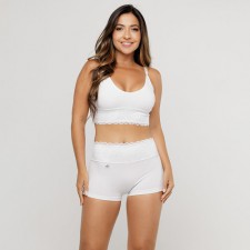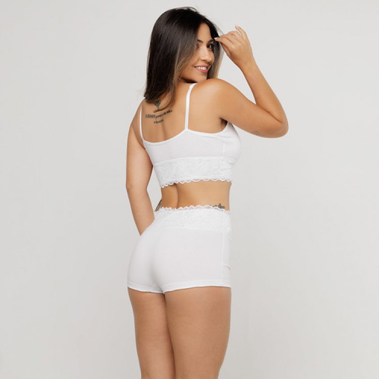 Cueca Feminina em Algodão Egípcio Renda na Cintura Branco