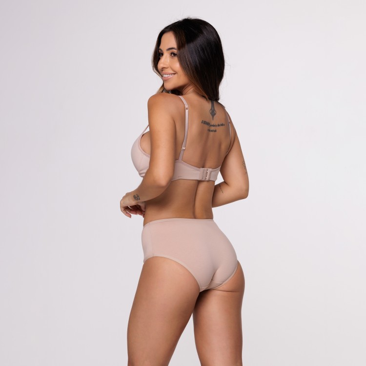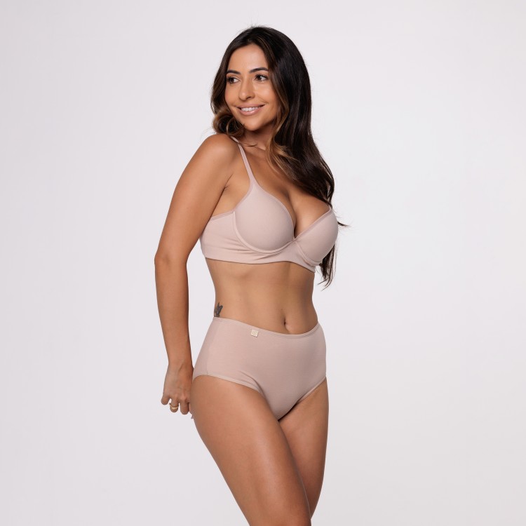 Esta calçola é confeccionada em algodão egípcio, proporcionando um toque macio e confortável. O design apresenta uma modelagem mais alta e larga, sendo ideal para quem prefere uma peça com maior cobertura e conforto.