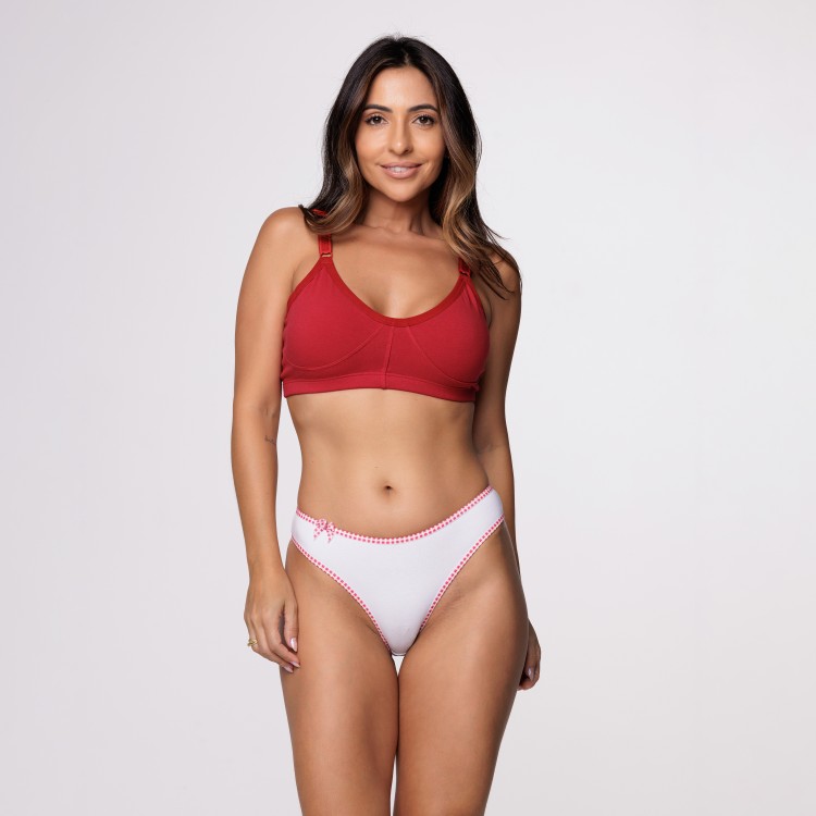 Esta calcinha básica é confeccionada em algodão egípcio, proporcionando um toque macio e confortável. O design apresenta viés em poliamida e elastano com estampa xadrez, além de um delicado laço que adiciona um toque de charme à peça. A modelagem é super confortável, ideal para o uso diário.